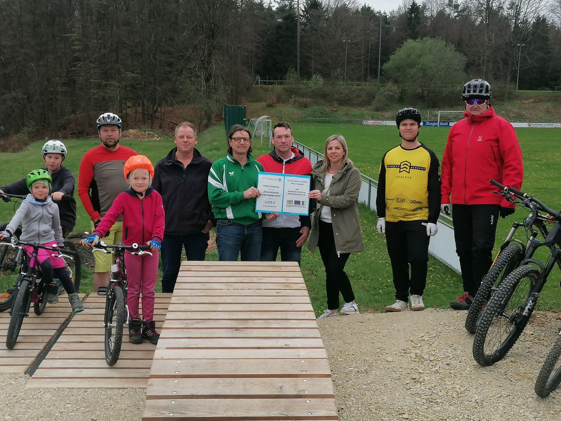 Beim Saisonauftakt der Mountainbike Sparte wurde die Schecküberreichung durch Claudia Lobenhofer von der LAG Regionalentwicklung durchgeführt.