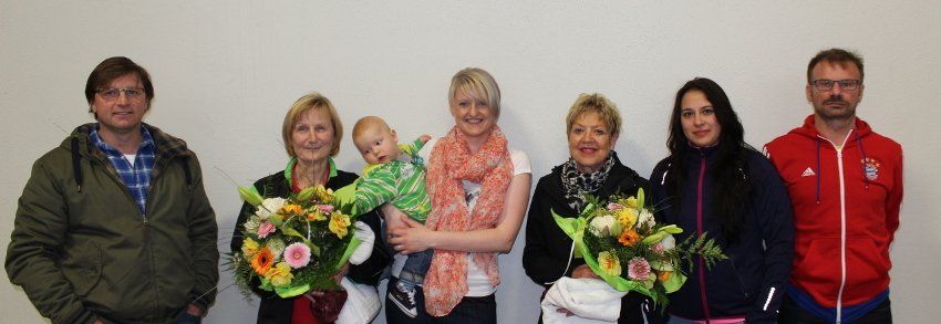 (Von links nach rechts )1.Vorstand Thomas Melzer, Inge Pilhofer, 1. Spartenleiterin Ramona Glaske, Renate Koch, 2. Spartenleiterin Daniela Ocotero-Garcia, Technischer Leiter Reinhold Roth